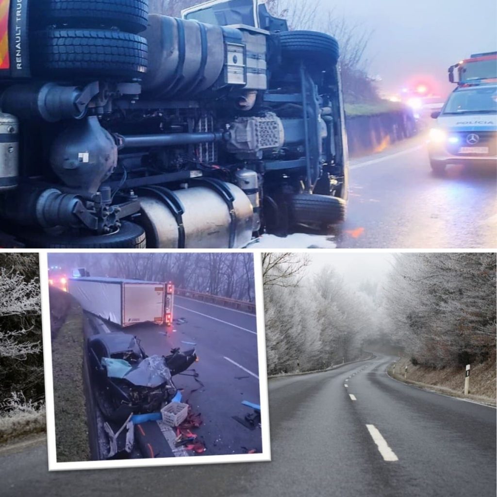 Na ceste I/16 v okrese Lučenec došlo v utorok ráno k vážnej dopravnej nehode, pri ktorej sa zrazil kamión s osobným autom. K dopravnej nehode došlo za obcou Pinciná v smere na Rimavskú Sobotu. Zverejnené policajné zábery z miesta činu ukazujú zdemolované auto a kamión prevrátený na ceste.
